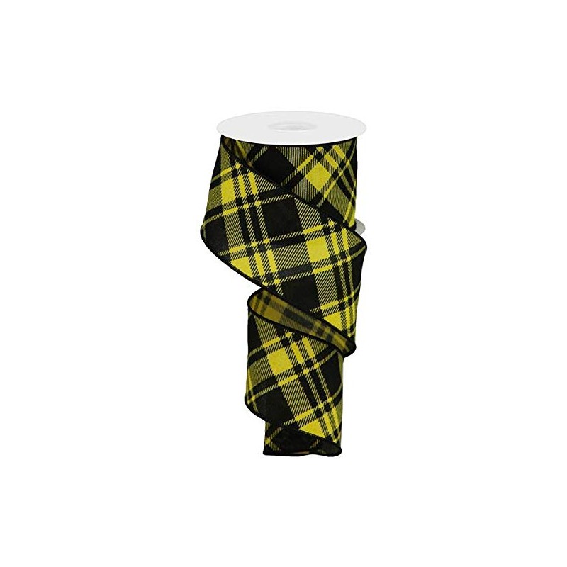 Diagonal Stripe/Check Wired Edge Ribbon - 10 Yards (Yellow, Black, 2.5")