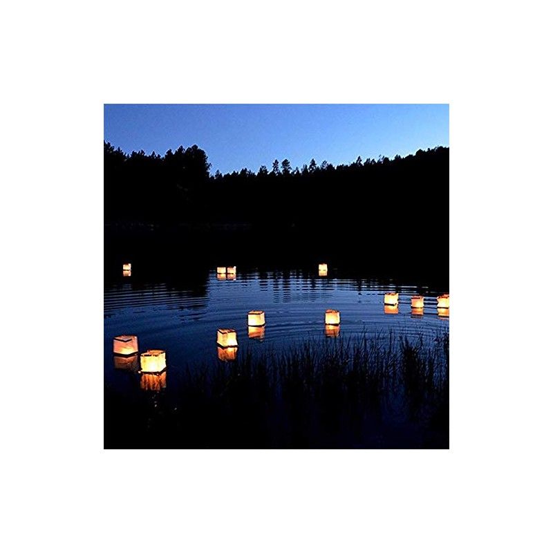 Description:- 100% New and high quality which will add a touch of oriental magic to water features, ponds, streams and swimming pools,- Unfold the light, lit and put in the candle, then put the light in the river or lake- They are great accessories to light up your garden,This will make your events/parties amazing!- This water lanterns light is wonderful for festivals, wedding, parties and any event you want,- Seize the chance and get the lucky light !Package included:- 20 x Lantern- 20 x tea candles.Specifications:1.Material: paper2.Unfolded size: 15cm*15cm*15cm (5.9"*5.9"*5.9")3.Color: White+gold(with warm light)Note: Water lanterns cannot be placed in plastic swimming pools and other plastic pools