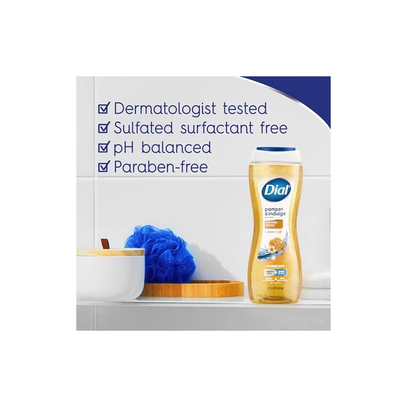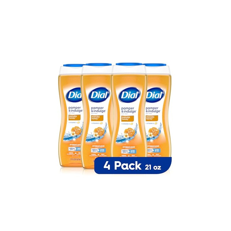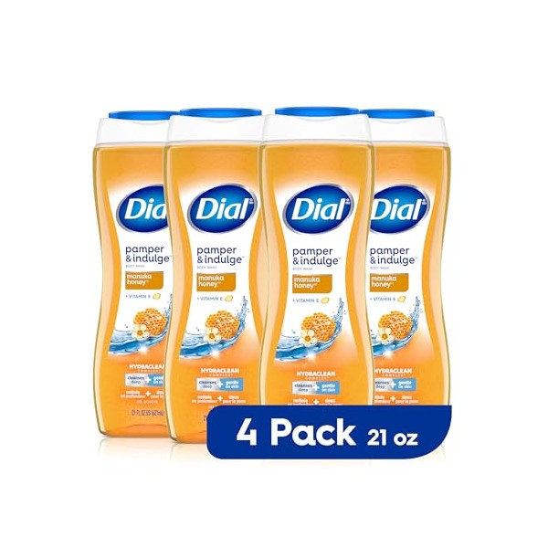 New from Dial! Pamper & Indulge Manuka Honey body wash. Delight your senses with a decadent manuka honey-infused experience. Dial® HYDRACLEAN Complex™ feels deeply cleansing while being gentle on your skin, leaving it feeling soft & healthy. Dermatologist tested & approved under the Leaping Bunny cruelty free program. This package contains four bottles of 21 fluid ounces of Dial body wash.