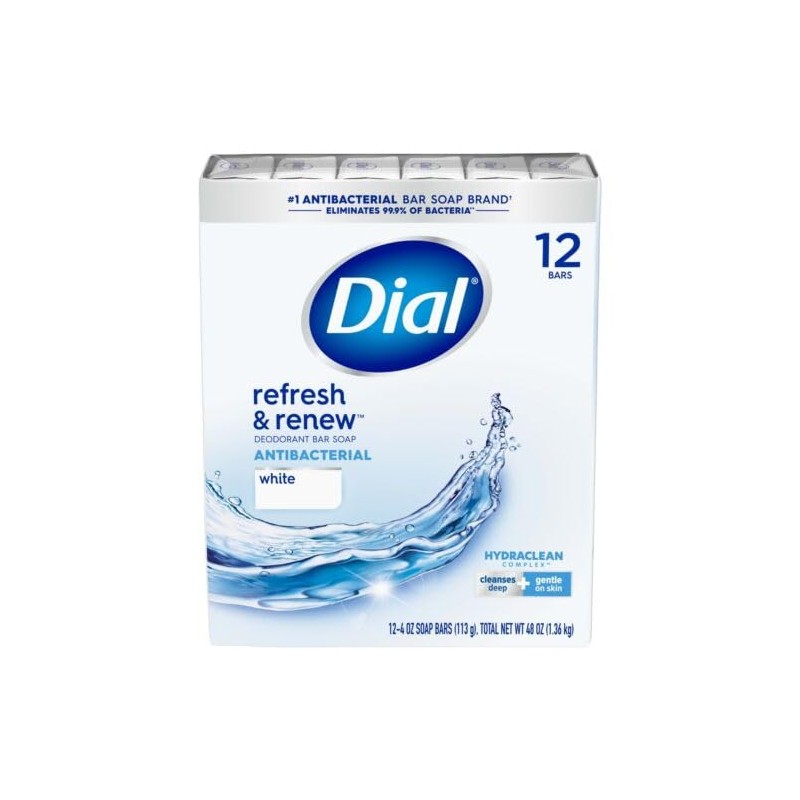 Dial Antibacterial Deodorant Bar Soap, 4 oz bars, White, Pack of 12