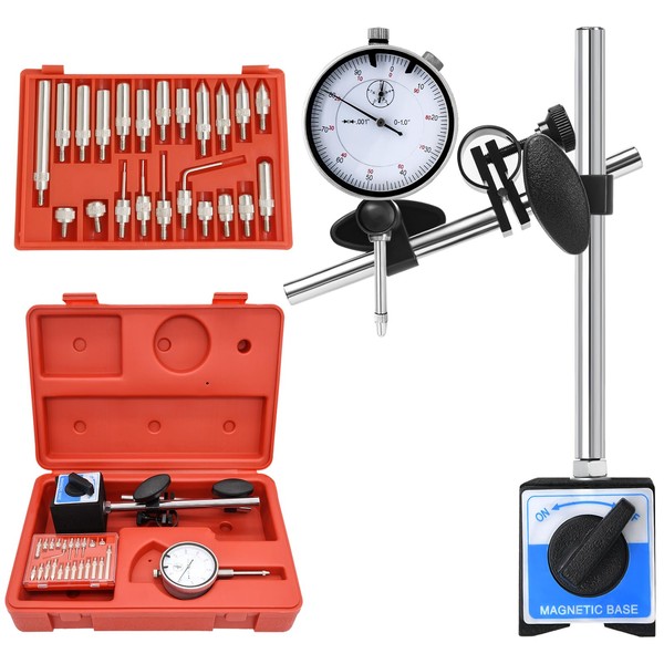 - ◆【Package Include】:1 x 0-1" .001" dial indicator, 1 x magnetic base , 1 x 22-piece indicator point set, 1 x hard plastic case