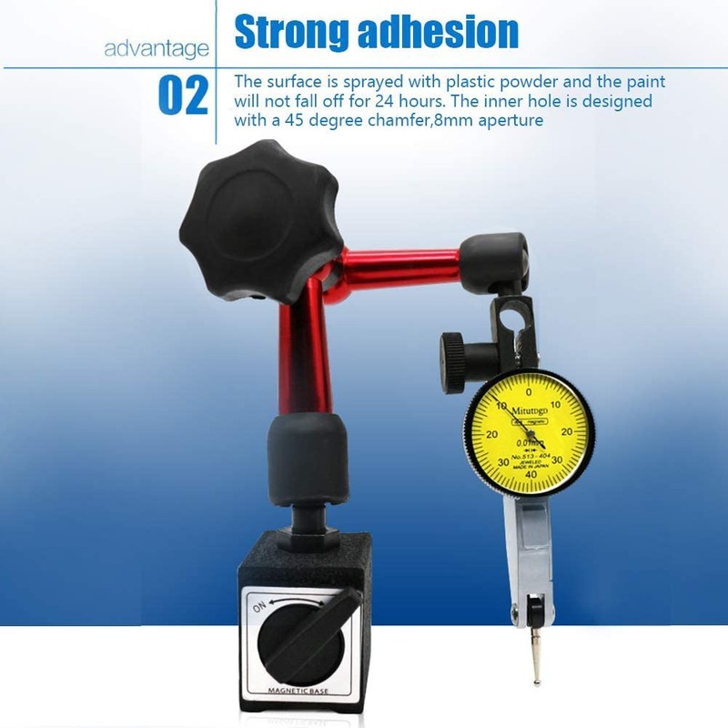 Dial Indicator with Magnetic Holder 0~0.8 mm Magnetic Measuring Tripod with Dial Gauge Metal Flexible Strong Magnetic Base Holder + Lever Dial Indicator Shockproof
