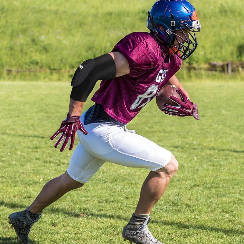 - Protection and Safety-Thickened EVA pads, protecting you against scratches and impact on your elbow. The Comfortable padding on an arm sleeve reduces the risk of injury during hard hits or tackles to the ground.