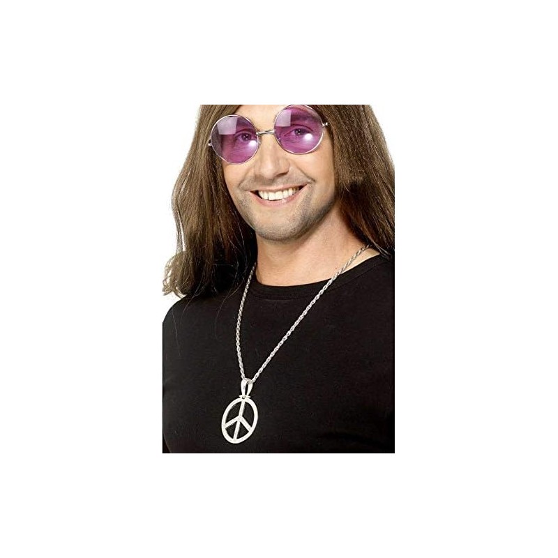 - Adult Unisex 60's Peace Sign Hippie Medallion, Silver, with 44cm Chain, Perfect for carnivals, theme parties or Halloween.