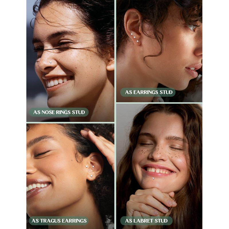 • Versatile use: these nose studs are perfect for different piercings. Three sizes available, can be used as helix piercing jewellery, tragus piercing, tragus earring, lip piercing, nose ring, helix earring, labret plug, labret piercing, conch rook piercing, ear piercing, titanium cartilage earrings and so on. Meet your different needs for daily wear.