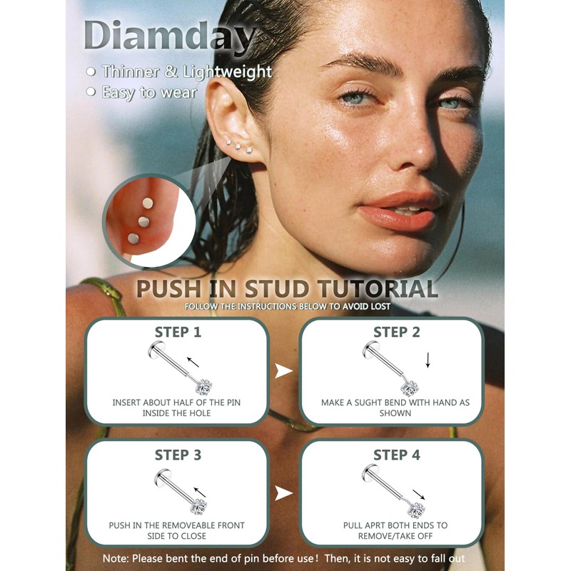 • Hypoallergenic helix piercings: designed with a push-back closure, these helix piercings are incredibly easy to insert and remove. Comfortable flat backs, will not poke into the skin. Whether you want to wear them as cartilage earrings or helix/tragus/conch/rook earrings, these flat back stud earrings offer both convenience and comfort. Perfect for long time wearing.