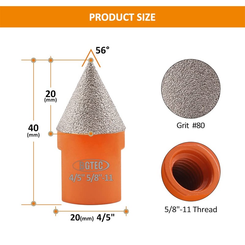 - 【Size】: 2pcs, Dia 20mm(4/5"): workable length 20mm; 5/8-11 thread; Grit #80; Angle: 56 degree
