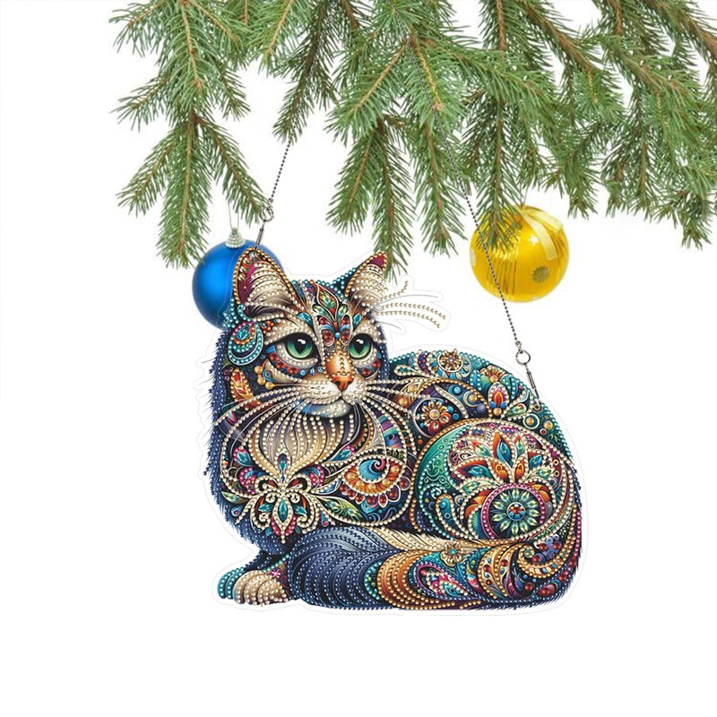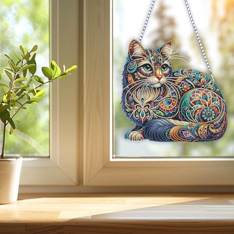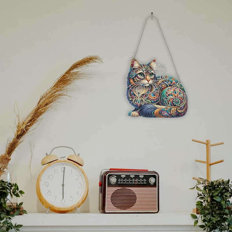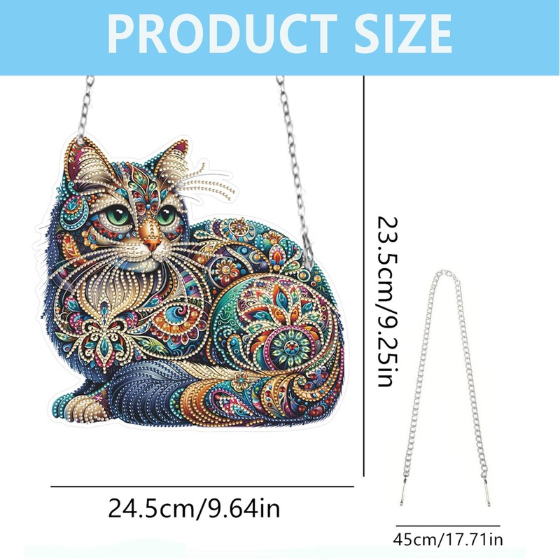 Diamond Board Painting Pendant Kit, DIY 24x25CM Hanging Gem Painting Craft Kit for Adults, Box Package with 45CM Chain (Cat)