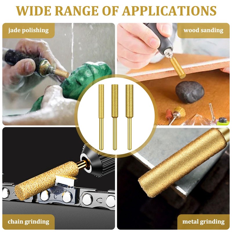 • High quality material: whetstone file for chainsaw made of high-quality diamond sand particles, the texture is hard, sharp and wear-resistant. Diamonds are firmly adsorbed on the surface of the grinding head, not easy to fall off, stable and durable.