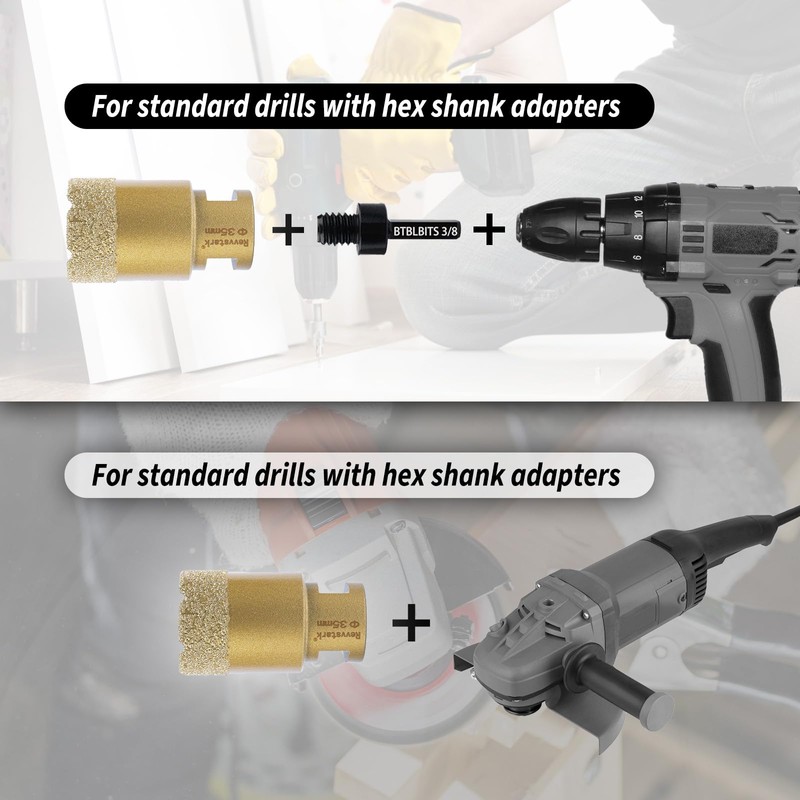 - Wide Application: Diamond hole saw are perfect for easy dry drilling on porcelain tiles, ceramics, bathroom tiles, marble, glass, granite, stone, masonry and brick; Mainly used for kitchen and bathroom renovation, installing faucets, soap dispensers and shower handles, water piping installation and more