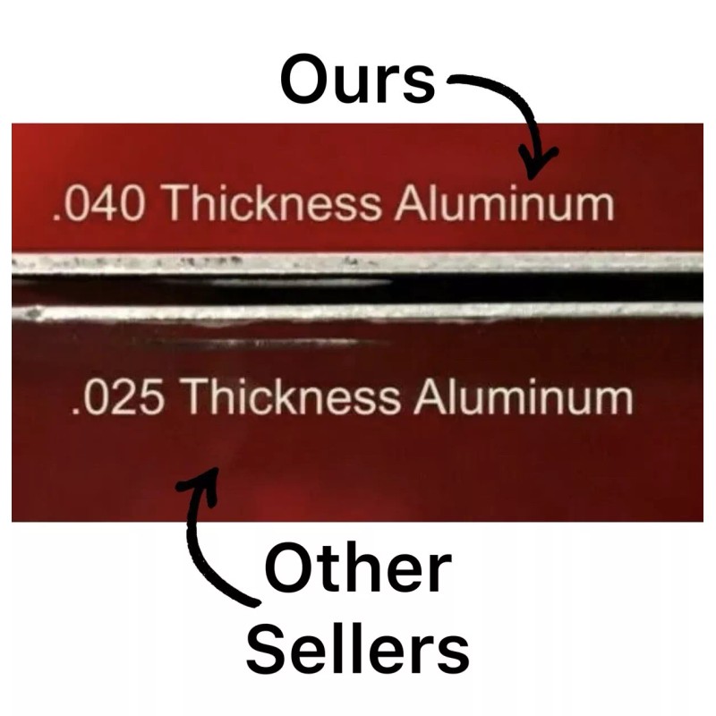 We use only the highest quality aluminum for our plates. They are weatherproof, rust proof and made from .040 aluminum. Most sellers sell .025, ours are almost twice as thick and able to withstand the harshest of road conditions. We are so confident in the quality of our product that we offer a 3 year manufacturer warranty!