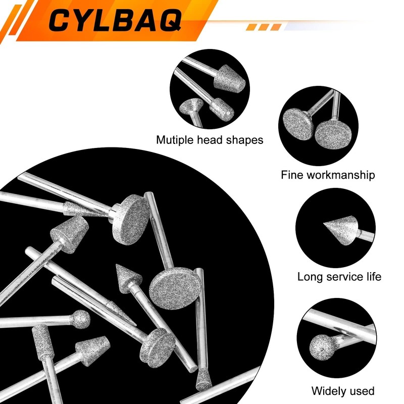 - 🔝【Wide Application】Diamond grinding head burr are sturdy enough. Mainly equipped with power tools, Suitable for use in high-speed rotation, wood, metal, glass, jewelry, jade, stone, ceramics and other surface painting, carving, polishing and other materials. Use with electric drill.