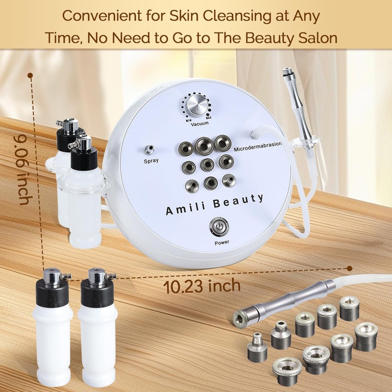 - 9 Diamond Tips: This device provides 9 different types of diamond tips. You can choose the right diamond tip according to the care area. It can be used on the face, neck, abdomen and chest to meet your different needs.