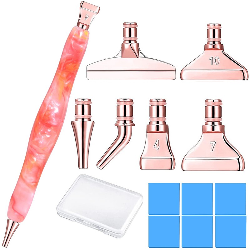 - YOU WILL GET:1Pc Diamond painting pen, 6Pcs Stainless steel diamond painting pen metal Multiplacers in different sizes,1 transparent placer storage box ,6 pieces blue wax clay and 1 pack of replacement rubber rings