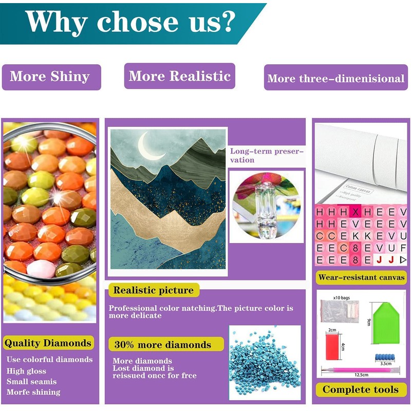 - 【Hochwertige Materialien】 Die Leinwand von dem Diamond painting Erwachsene ist eine hochauflösende bedruckte Ölleinwand und wasserdicht, stark viskos, ungiftig und geruchlos.