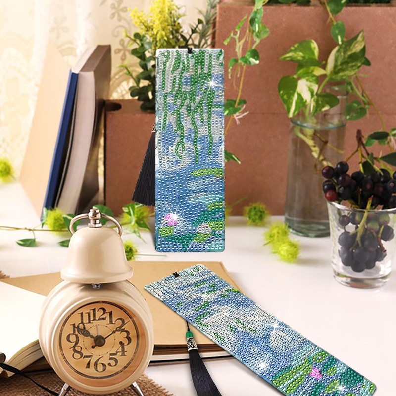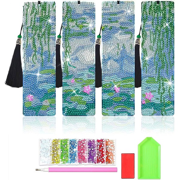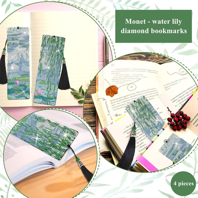 Diamond Painting Kits Bookmarks, 4 PCS Monet Water Lilies Diamond Art Acrylic Bookmarks with Tassel, Bookmarks Kits Gift for Reader Crafts Lovers