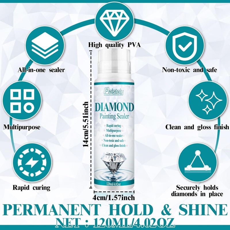 - Safe and Non-toxic: Paistely diamond painting sealer is made of polyvinyl alcohol (PVA) and water, which is skin-friendly and 100% non-toxic water-based glue. Diamond painting glue sealer is 100% safe and non-toxic, with no irritating odor, and can be used by adults and children with confidence