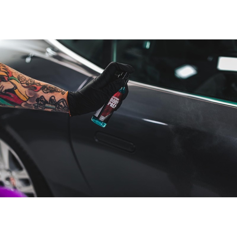 Diamond Quick Body is an effortless, nanodiamond hybrid Si02 spray coating which yields 6 months of hydrophobic protection. This spray and wipe formula will create a slick, caramel gloss appearance on any coated or non-coated vehicle. Immediately results in a finish that will resist UV oxidation and repel water easily. Diamond Body Prep is an ideal paint surface cleanser that will remove all polish residues, waxes and sealants to allow an optimal bonding for nanodiamond protective coatings.