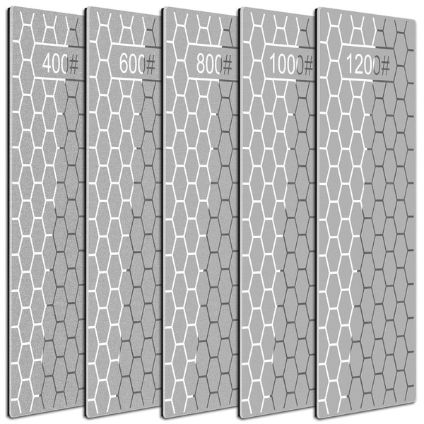 - PACKAGE CONTENTS:The set includes 5 diamond sharpening stones with grits (400/600/800/1000/1200)! Each compact whetstone measures 5.98"x2.48" – stores vertically/horizontally for space-saving convenience. Achieve razor-sharp edges anywhere, anytime with proper technique