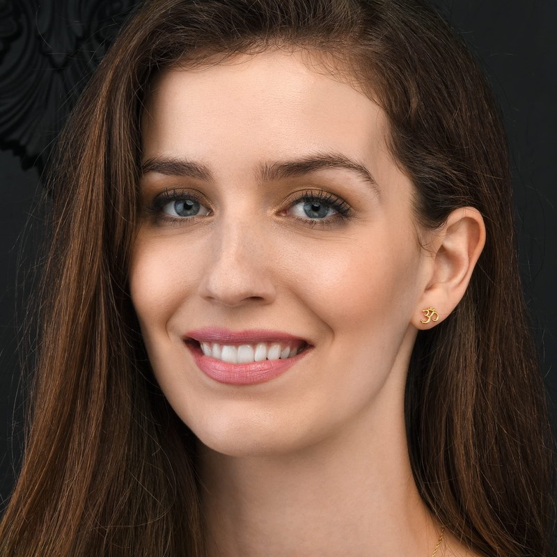 Diamond Treats Cute Gold Plated Om Earrings in 925 Sterling Silver, Cute Om Stud Earrings for Women, Spiritual Gold Earrings for Women, Dainty Gold Jewelry for Women