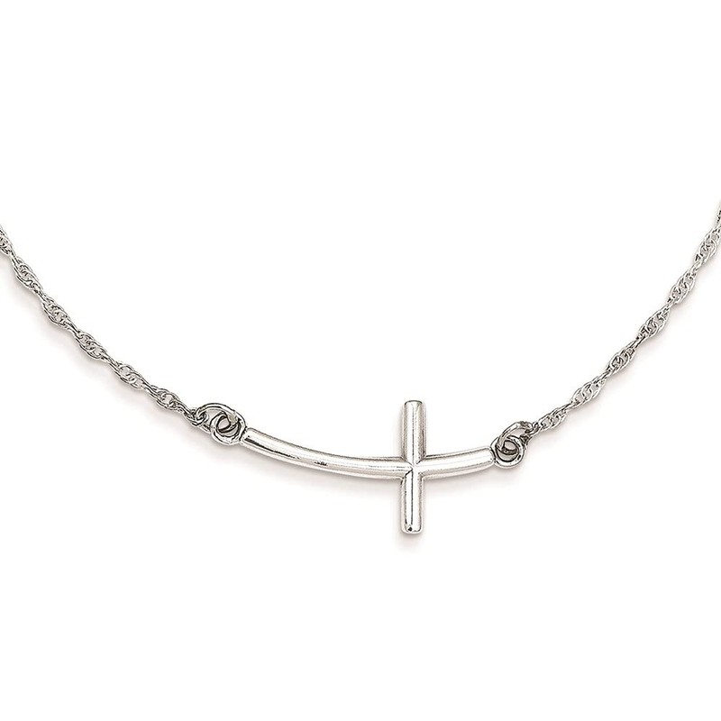 Diamond2Deal Sterling Silver Rhodium-plated Large Sideways Curved Cross Necklace