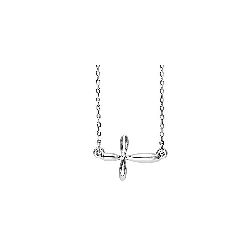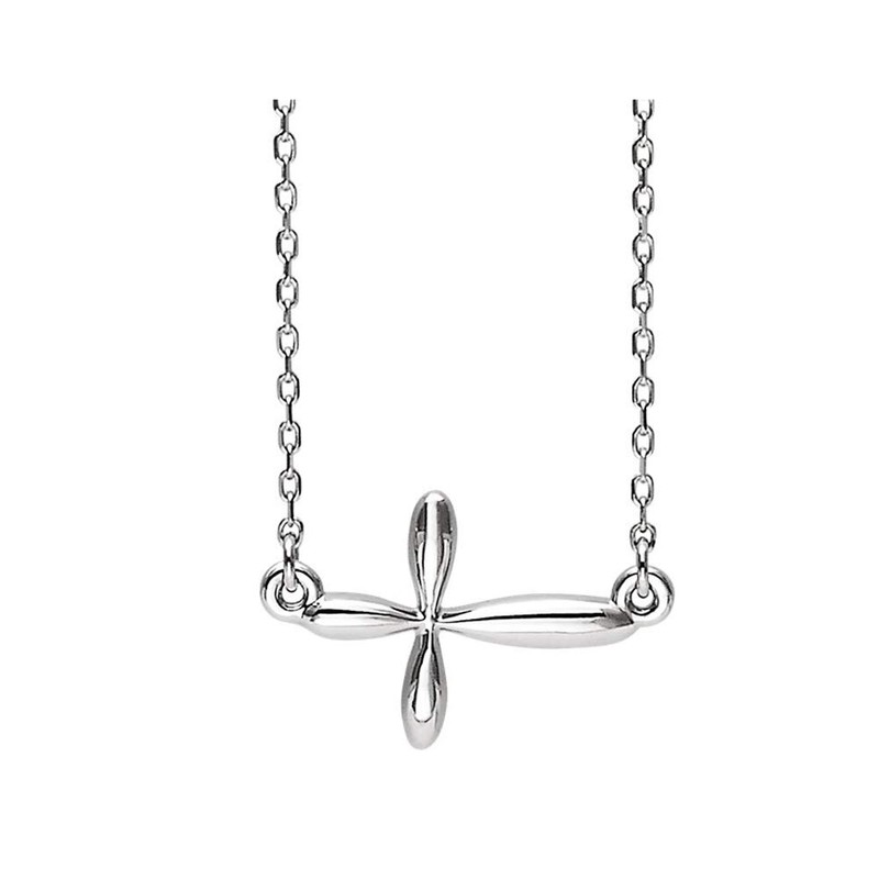 DiamondJewelryNY Sideway Cross, Sterling Silver Cross Necklace (Cross 1/2" X 3/8")