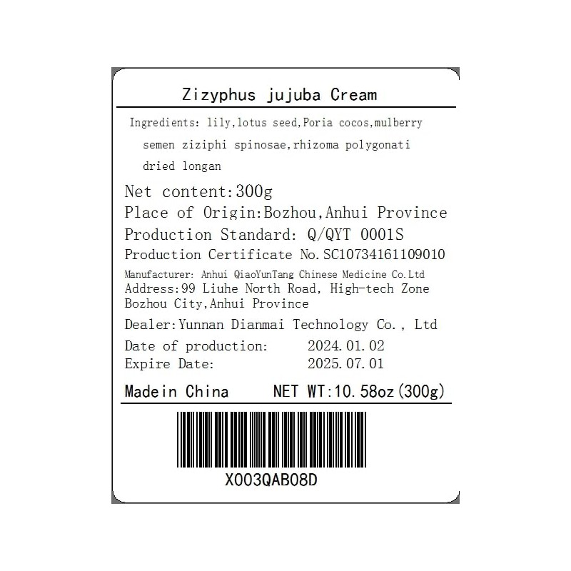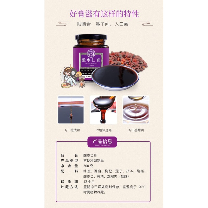 DIAN MAI HAO ʸ300g/10.58oz Jujube seed paste Pickled jujube kernel, poria cocos, mulberry, lily and other raw materials to make paste