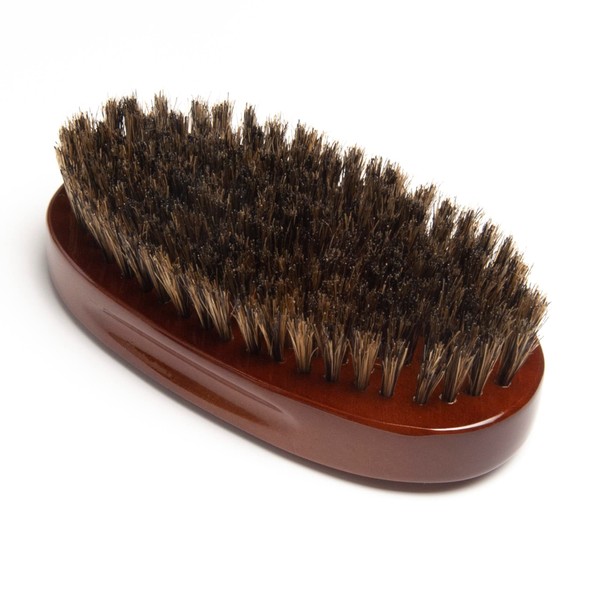 100% natural boar bristle palm brush. Top of the line brush, great for personal or professional use. Varnished dark wooden handle. 9 row 5" sized palm brush.