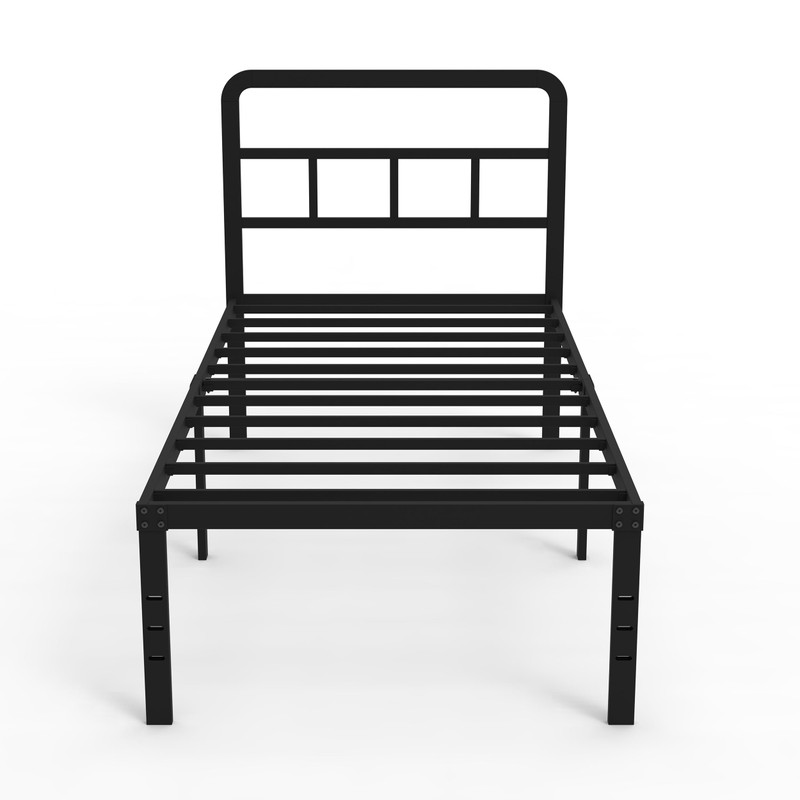 DiaOutro heavy duty 18 inch Xl twin bed frame with headboard built with reinforced metal slats. Sturdy structure makes the bed frame noise- free. In addition, powder-coated metal is easy to clean. It has a simple and clean design in metal, all the tools you need are effectively packaged in a box. The installation can be done quickly in a few steps even by yourself. The light and airy design goes well with other bedroom furniture and fits perfectly. Just sit on the bed and prop some pillows behind your back, you'll have a comfortable place to read or watch TV.