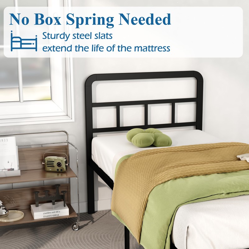 DiaOutro 18 Inch Twin XL Bed Frame with Headboard No Box Spring Needed Metal ...