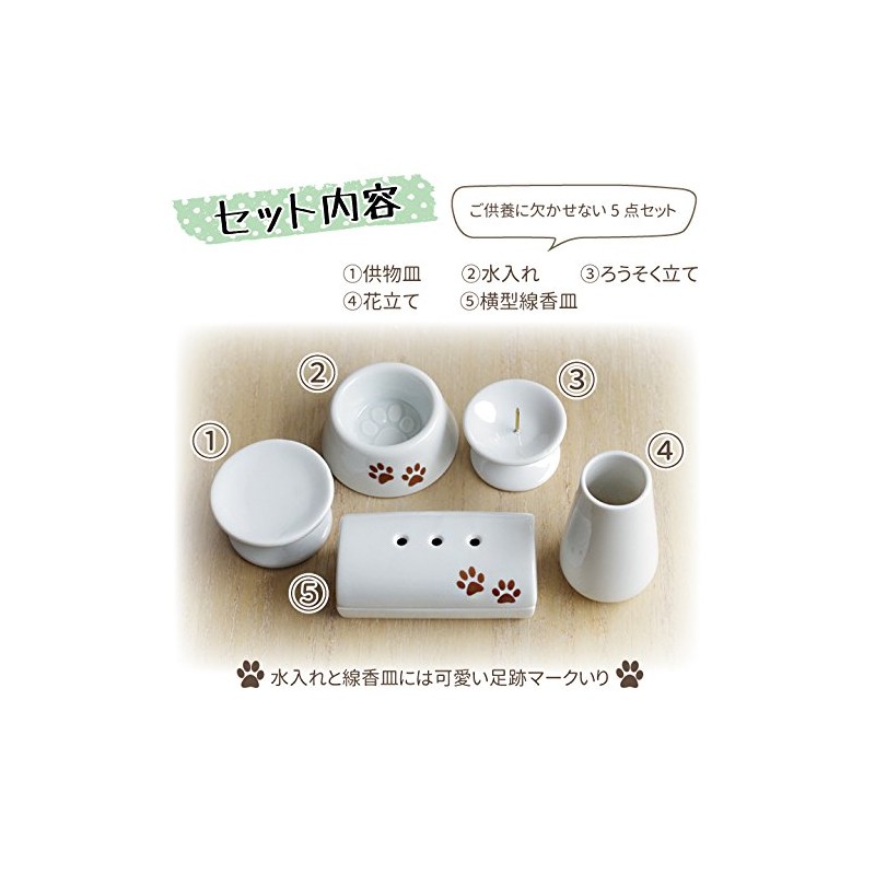 - This set includes 5 pieces of incense sticks that can be placed horizontally, so you can use it with peace of mind, a water container made to drink from your pet, a small taller base for easy eating, a simple flower stand and a candle stand