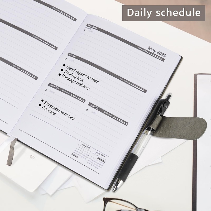 - Pen holder / PU Leather cover / Hard cover / Two bookmarks / Accordion inner pocket.