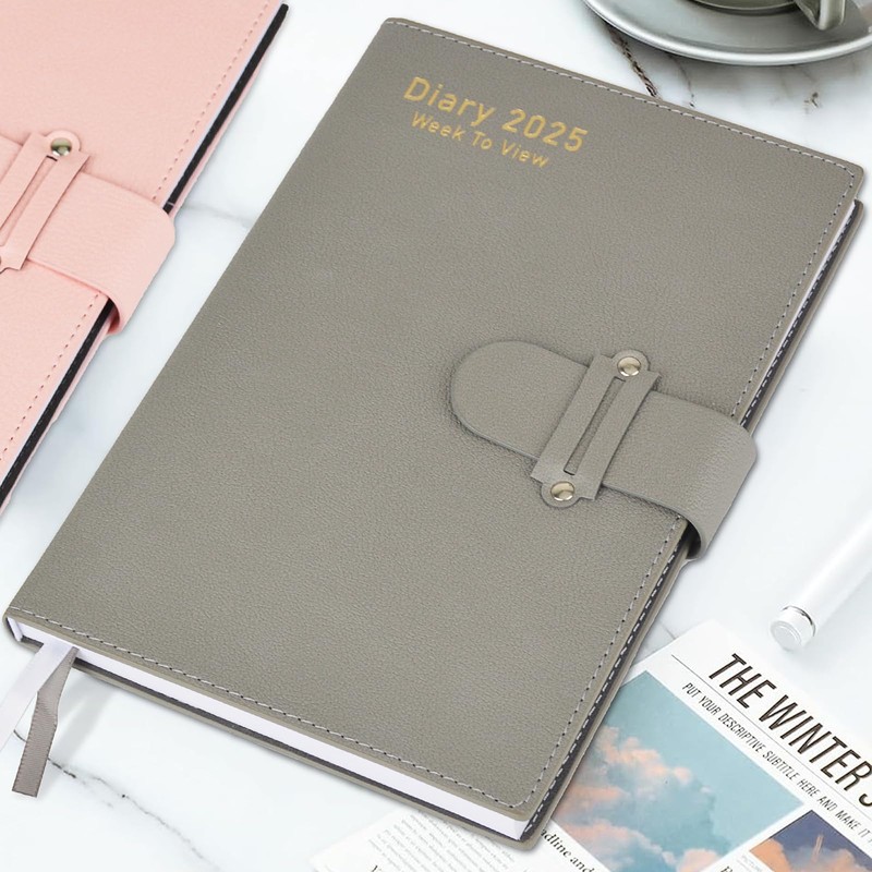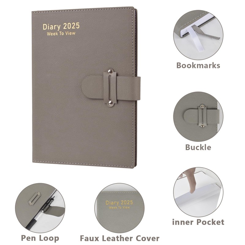 Diary 2025 Week to view A5 Size Dated Weekly & Daily Planner Organize your time for 2025 full year(Grey)