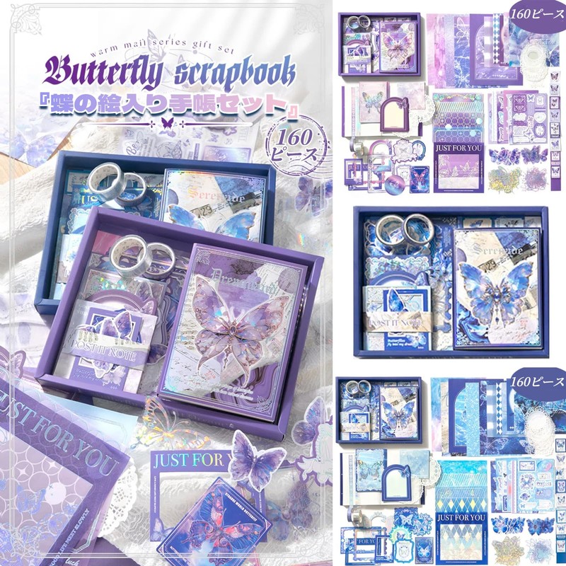 Diary Book Set, 162 Piece Set, Stationery Set, Butterfly Series, Collage Material, A6, Personal Notebook Set, Sticker Book, Notebook Set, Retro Style, Cute Notebook, Washi Tape, Stickers, Girls,