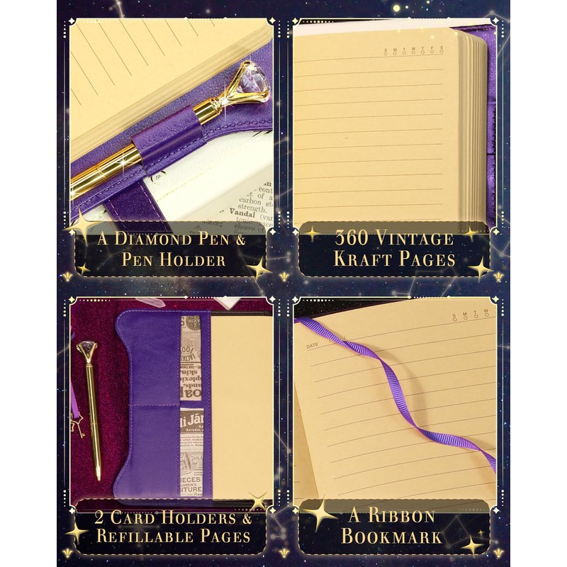 • 360 Pages of Vintage Kraft Paper: This girls diary features 360 pages of high-quality, acid-free B6-sized (7x5 inches) paper, perfect for capturing a year’s worth of dreams. The vintage parchment, paired with the night sky-themed cover and sparkling gold accents, makes this starry cover truly enchanting.
