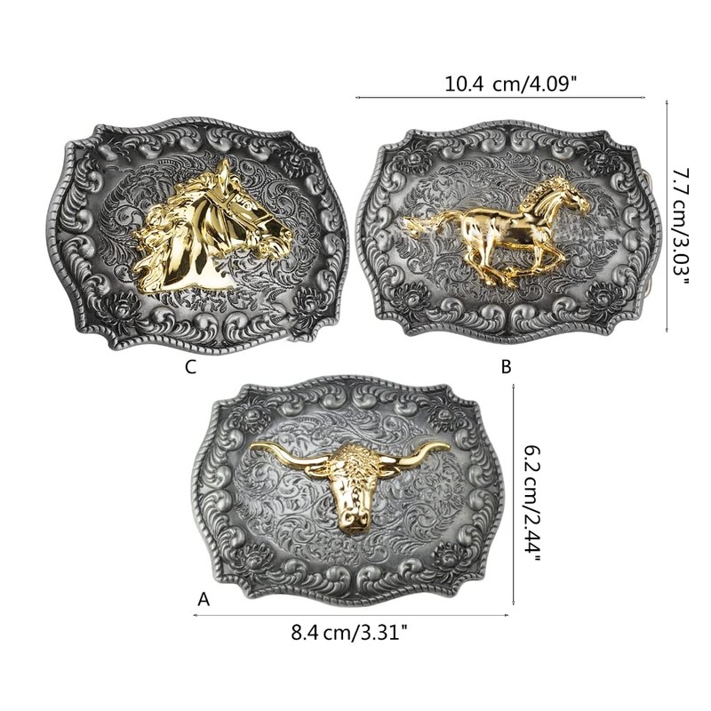 Vintage style metal buckle with bull/horse decor, prevent oxidation and color fading, anti rust for long storage, advanced polishing provides very delicate design, easy and convenient to wear.