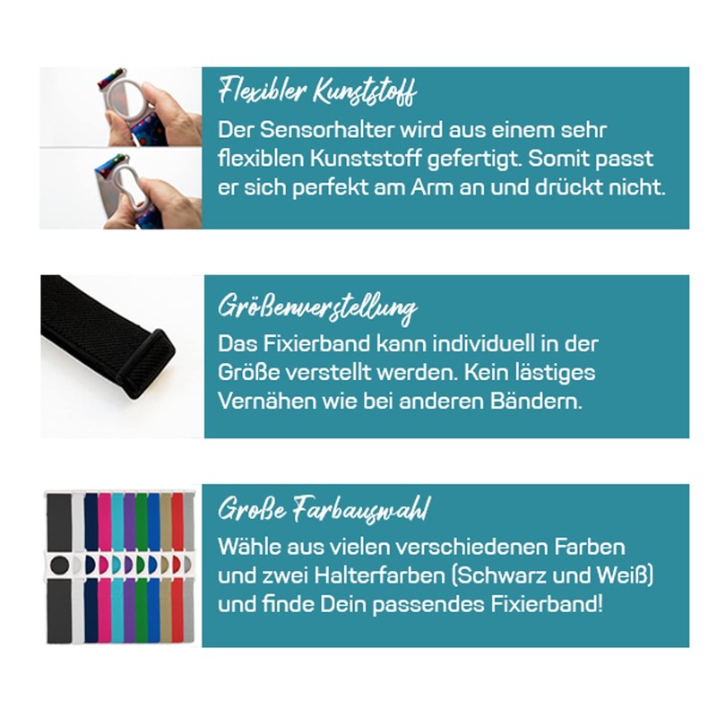 - Waterproof and quick drying – when showering, swimming or sports – our fixing straps provide optimal protection for your sensor and are also quick-drying