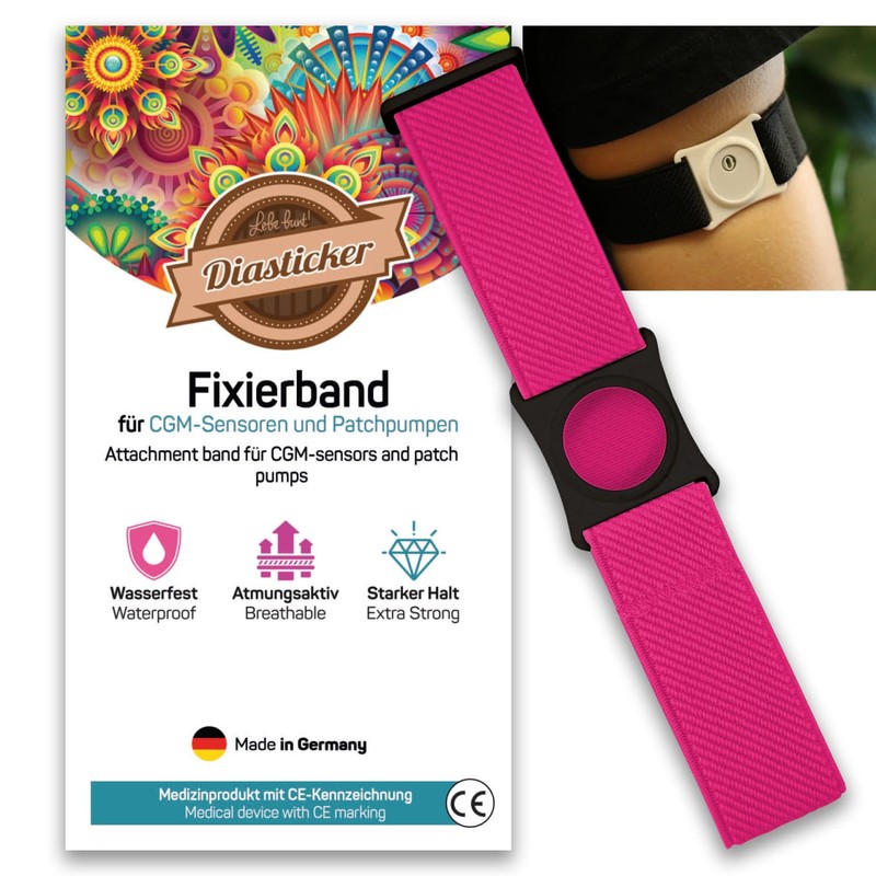 Diasticker® Freestyle Libre 3 – Fixation Strap | Flexible – Waterproof – Strong Hold | Sensor Protection, Fixation for Freestyle Libre Sensor | Holder: Black (Small: 18-25 cm, Pink)