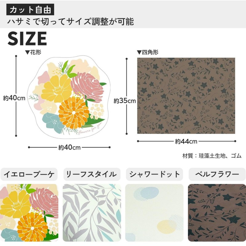 Diatomaceous Earth Quick Drying Absorbent Mat, Dish Drying Mat, Roll, Storeable, Anti-Slip, Dish Placement, Quick Drying, Oil-Resistant, Easy to Clean (Leaf Style, 13.8 x 17.3 inches (35 x 44 cm)