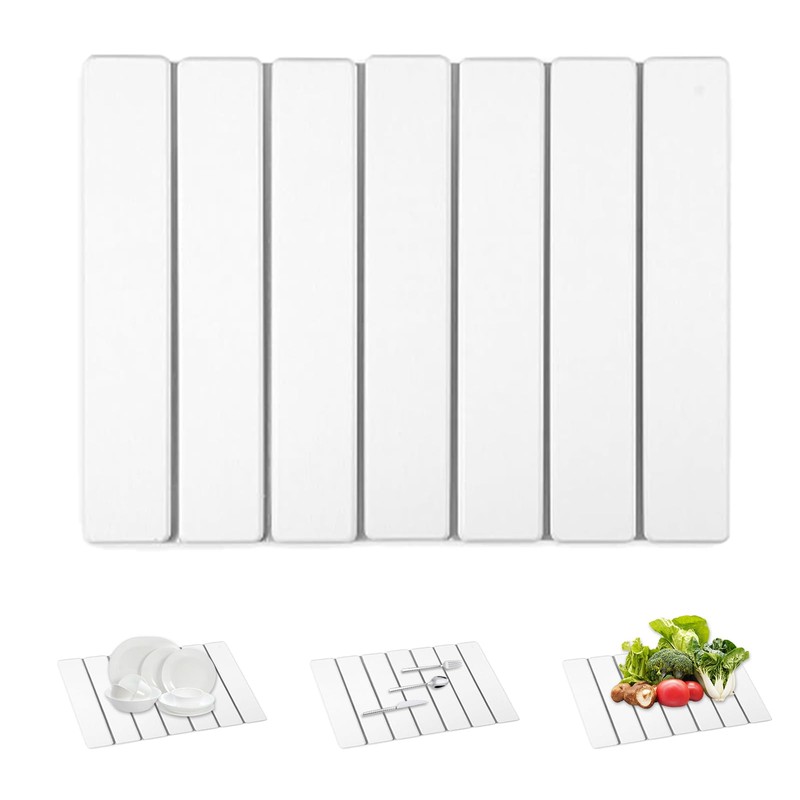 Diatomite Stone Drying Mat for Kitchen Counter Foldable Stone Dish Quick Dry Mat Absorbent Diatomaceous Earth Drying Pad Reusable Dish Drainer Mat for Dishes Bottles Cups Bathroom 30x40CM (White)