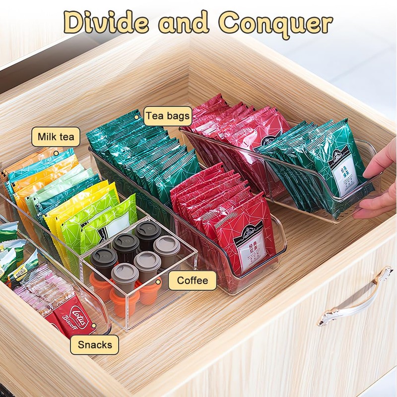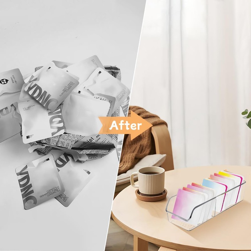 - 【At a Glance】With its transparent design, this tea bag organizers makes finding your favourite flavour a fun game of "what's inside?". with its transparent design. No more guessing, easy access to tea, sugar, coffee and snacks