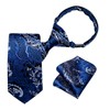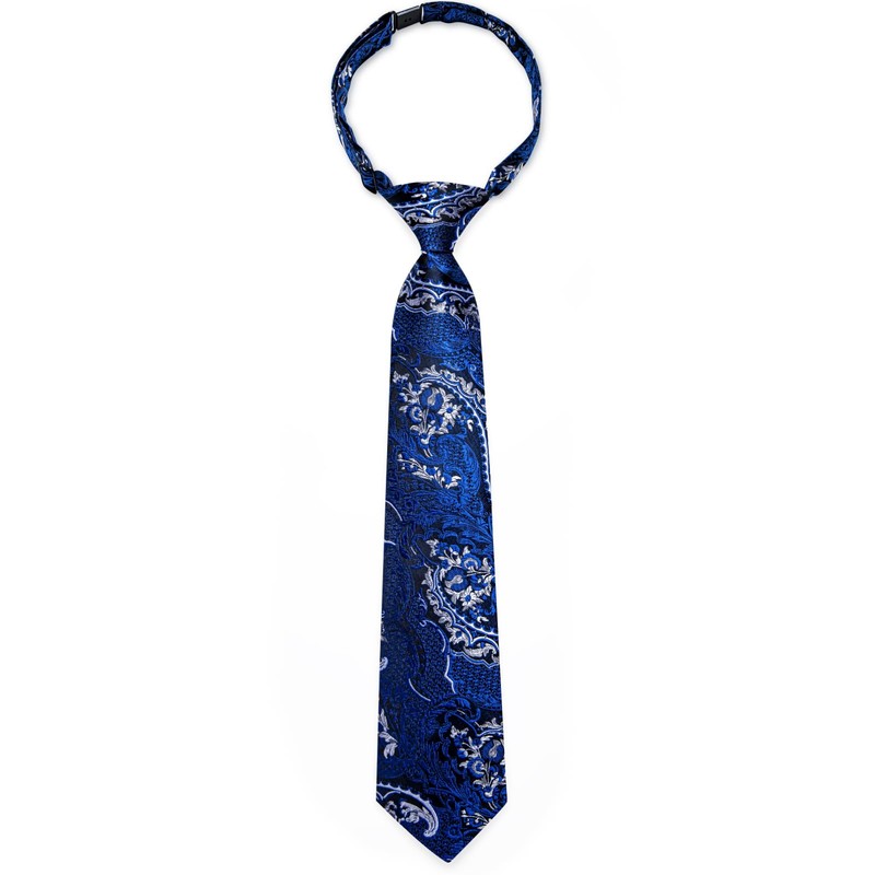 DiBanGu Boys Adjustable Tie and Pocket Square Pre-tied Zipper Necktie for Kids Wedding Party Graduation School Uniforms, Royal Blue and Silver