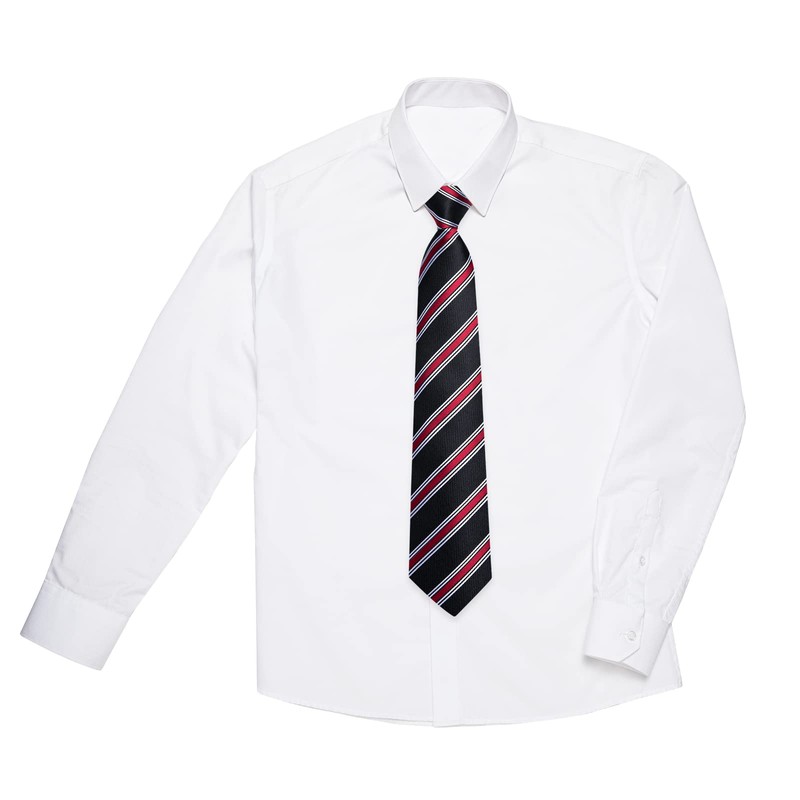 - 【Easy to Use】 Easy to wear socket design,the boys black and red tie takes seconds to be clipped on and off.The neck size of the pre-tied necktie can be adjusted according to the needs of children,idea for an efficient and convenient lifestyle