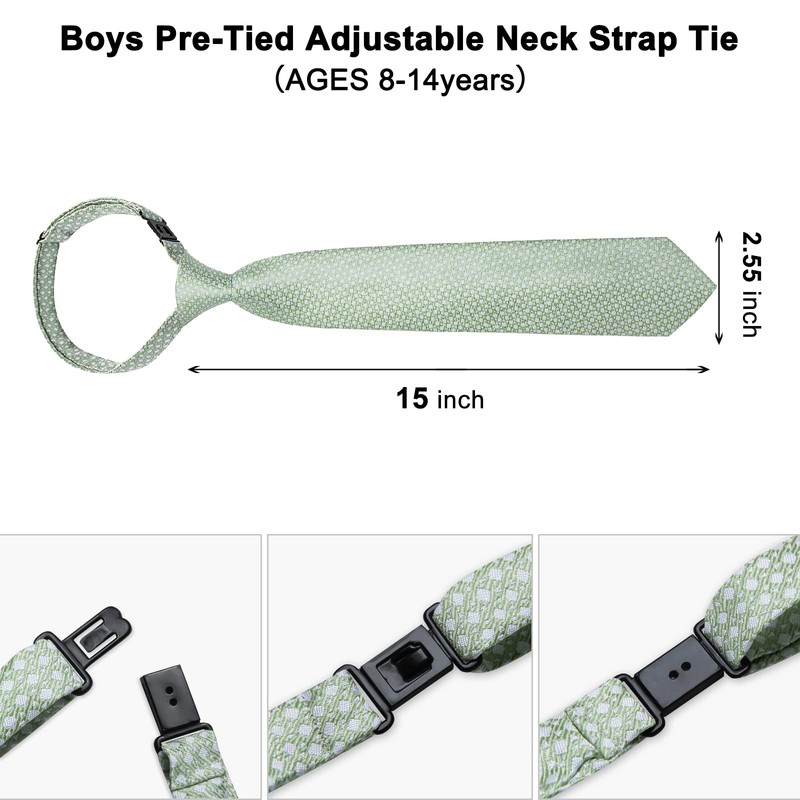 - 【Perfect Size】Tie size: 2.55 inches Wide and 15 inches from Knot to Bottom. Pocket Square size: 7.87 inches x 7.87 inches. Pre-tied boy's tie suitable for 7-15 -year-old boys