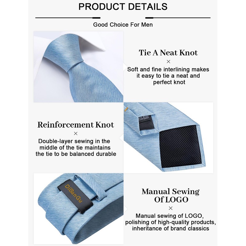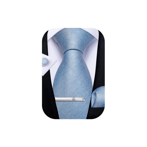 DiBanGu Conjunto de gemelos cuadrados de seda para hombre, corbata lisa y bolsillo, 05 Azul Claro, Medium