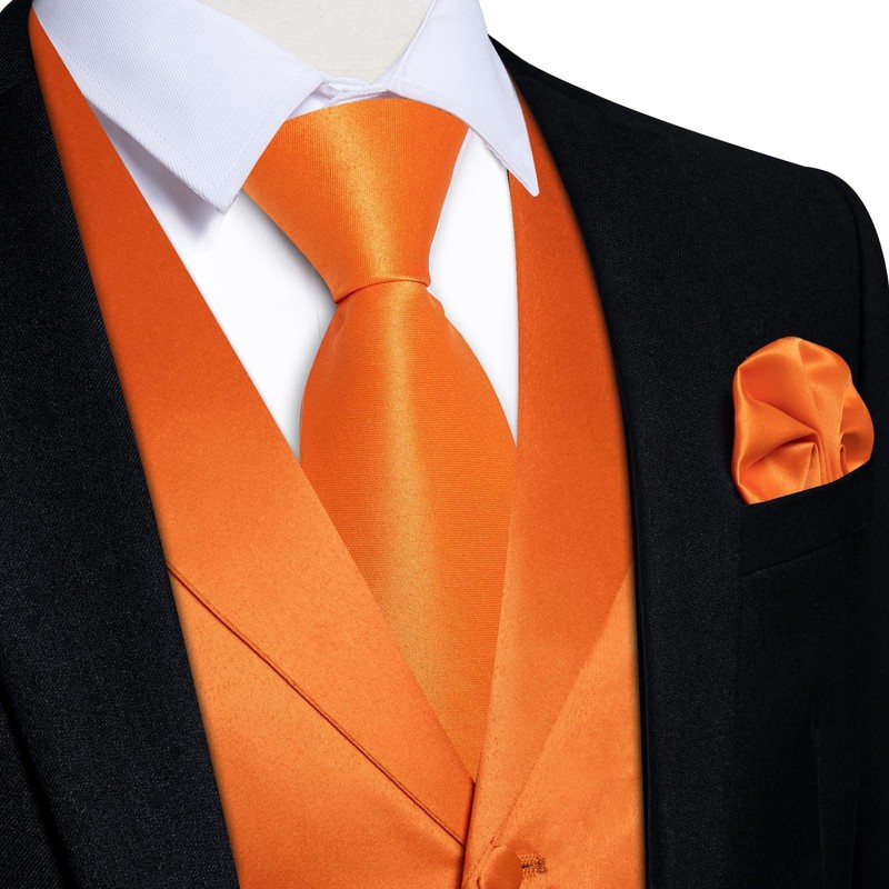 - 【Purchase Contains】Satin Orange Notch Lapel Waistcoat+Tie+Pre-tied Bowtie+Lapel Pin Brooch+Tie Clip+Pocket Square+Cufflinks. Meet your dress requirements for attending different occasions with family, loved ones, friends, etc