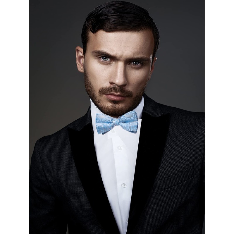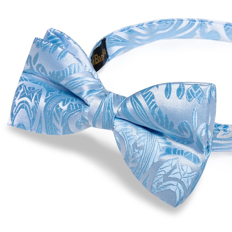 DiBanGu Light Blue Bow Ties for Men Paisley Pretied Bow Tie Silk Bowtie Set with Pocket Square Lapel Pin Cufflinks Adjustable
