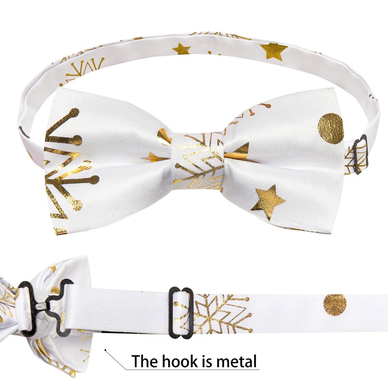 DiBanGu Men's Christmas Pre-Tied Bow Tie Silk Festival Bow Tie and Pocket Square Cufflink Set for Christmas Party Holiday, White and gold
