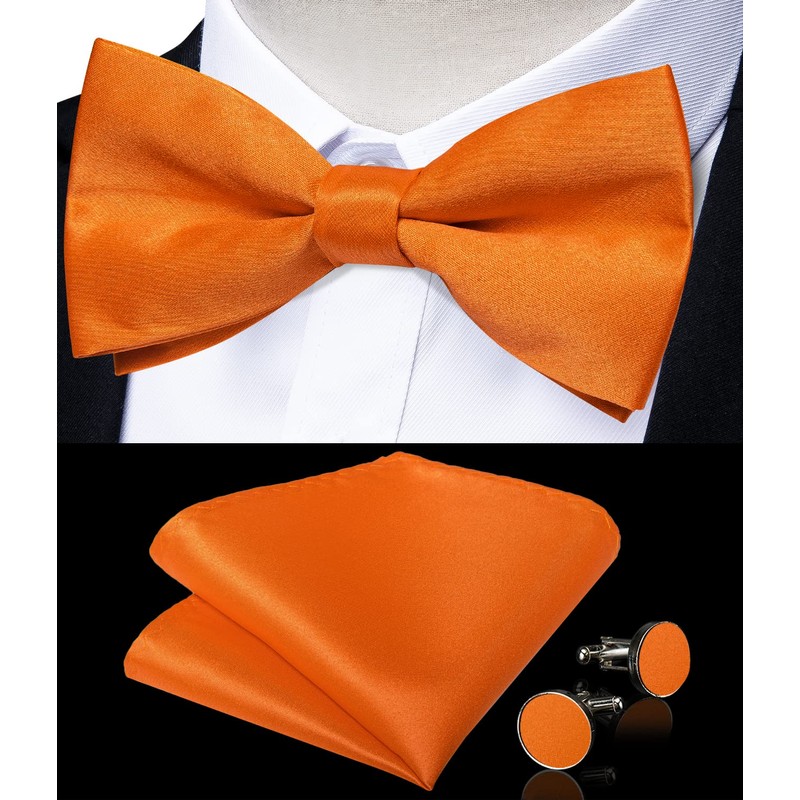 DiBanGu Orange Satin Bow Ties for Men Silk Pre-tied Bowtie and Pocket Square Cufflinks Set for Wedding Party