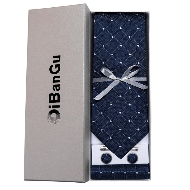 - 【PURCHASE CONTAINS】Silk Blue Plaid/Checkered Necktie + Woven Pocket Square + Cufflinks + Silver Tie Clip+ Gift Box.It's a proper gift for Father's Day,Christmas Day,Valentine's Day,Thanksgiving Day,Anniversary,birthday ect
